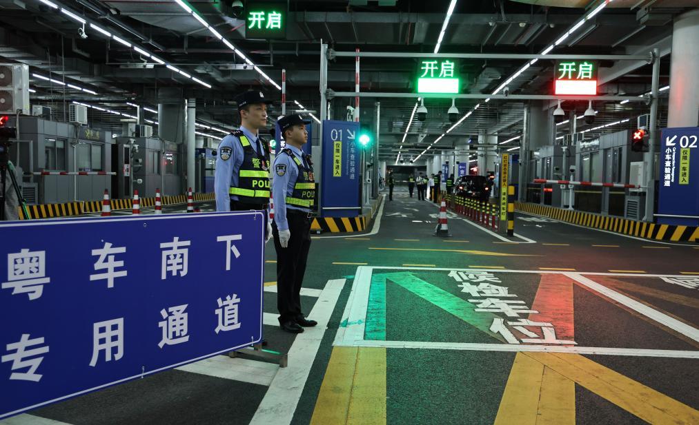 11月15日,马拉松比赛前,参赛选手在深圳湾口岸前置查验区完成海关查验手续。